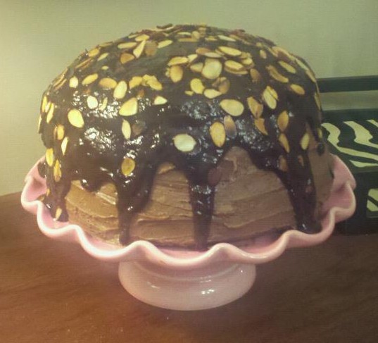 I made this labor intensive Special-Occasion Chocolate Cake for several of my co-workers who celebrated birthdays one fall. It’s three layers of the most moist, delicious combination of toasted almonds, fudgy buttercream frosting and chocolate ganache you’ll ever taste. This recipe, courtesy of Taste of Home, is the epitome of Some Kinda Good.
