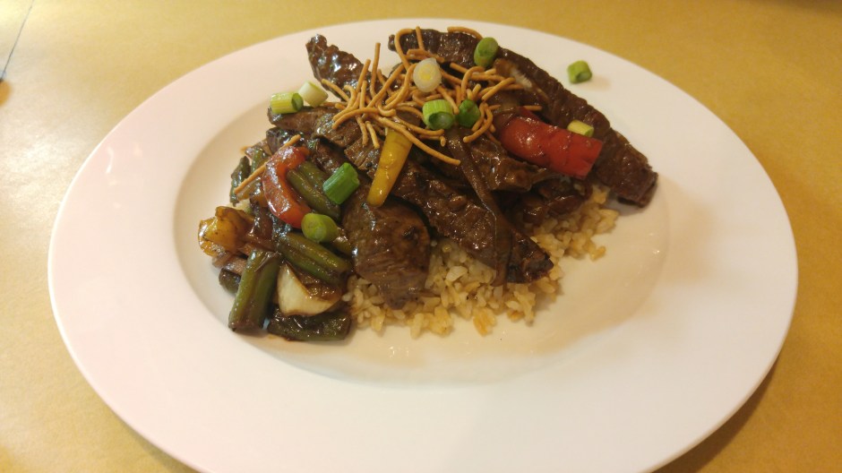 Once I grew up and moved away, for the longest time pepper steak was not available in my grocery store. I learned to substitute ground beef, but it wasn’t until I made dinner last night that I realized just how much I’d missed it.