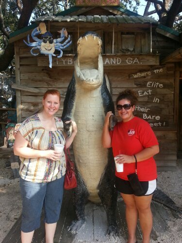 Once we acted like tourists and took our photo with the Croc (this made me feel like we were 12 again on a family vacation), we took our to-go cups of sweet tea and made our way out to the beach. Jennifer is the red-head on the left, and that’s me on the right.