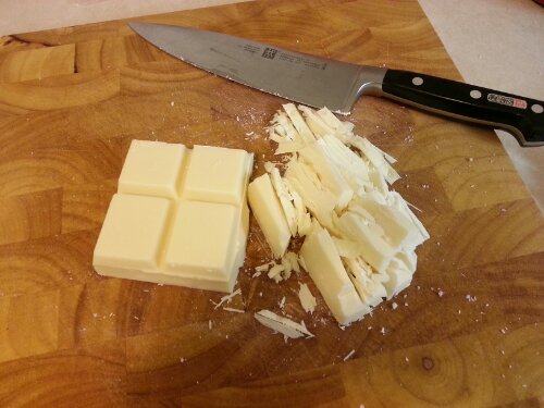 Chop up some good quality white chocolate bark. You can kind find it on the baking aisle of most grocery stores.