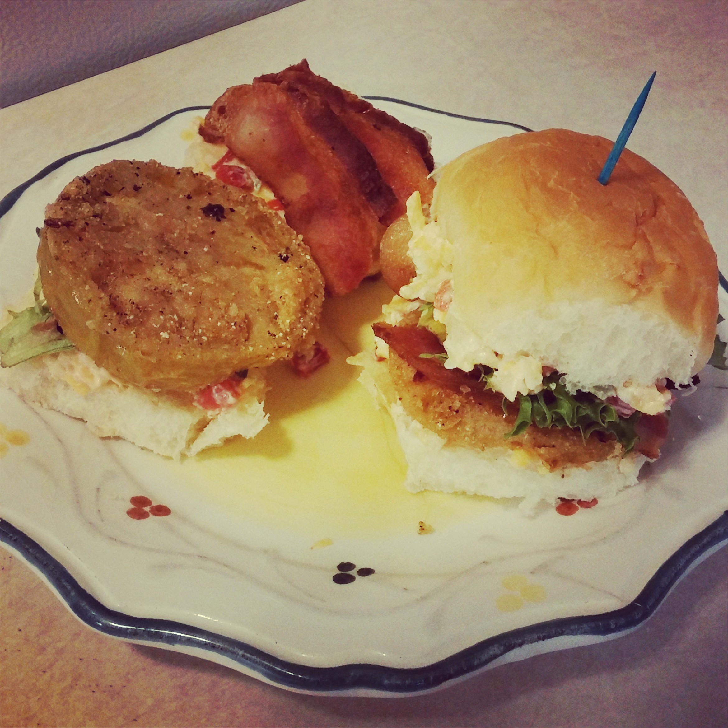 Bacon, Lettuce and Fried Green Tomato Sliders