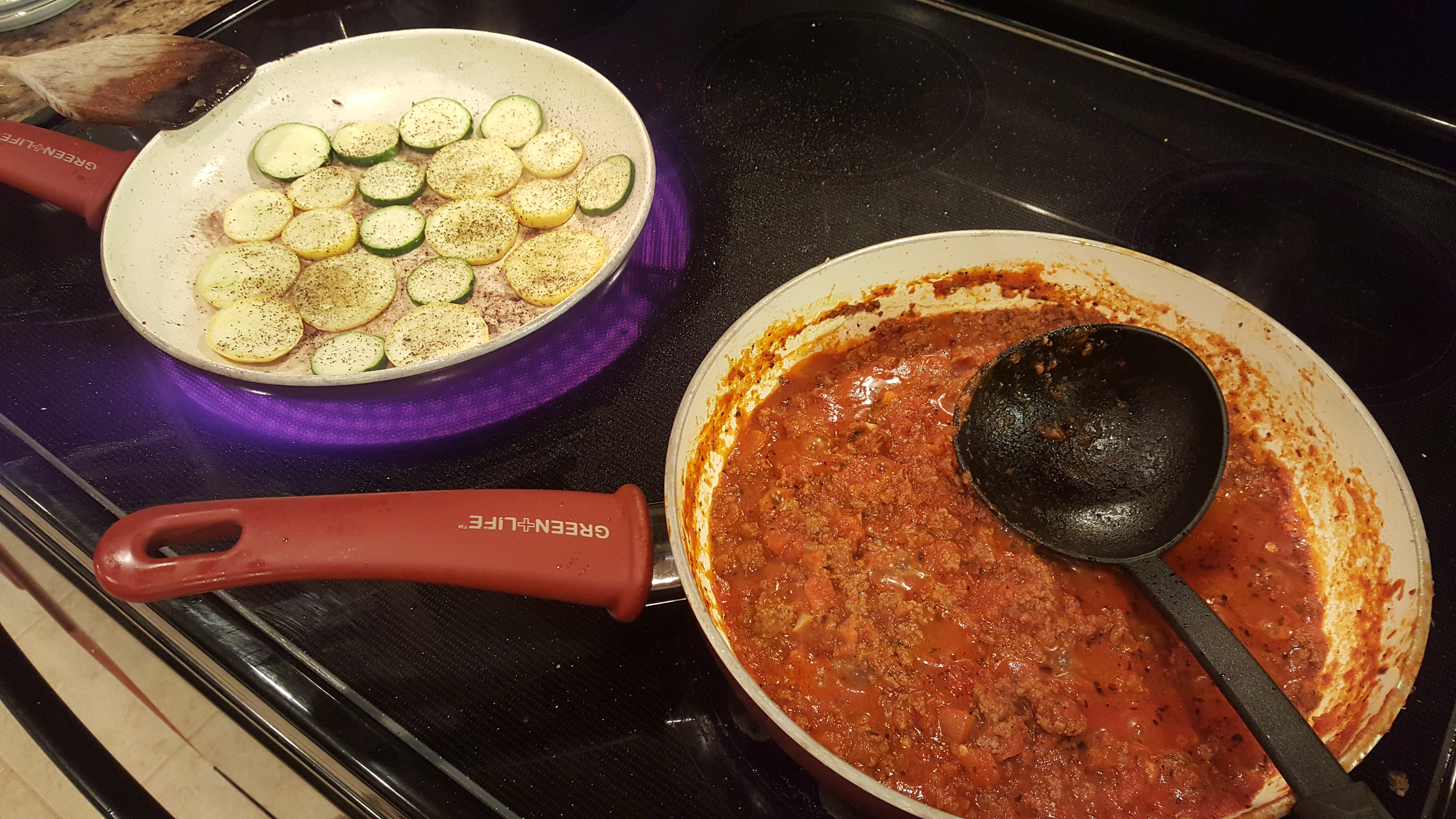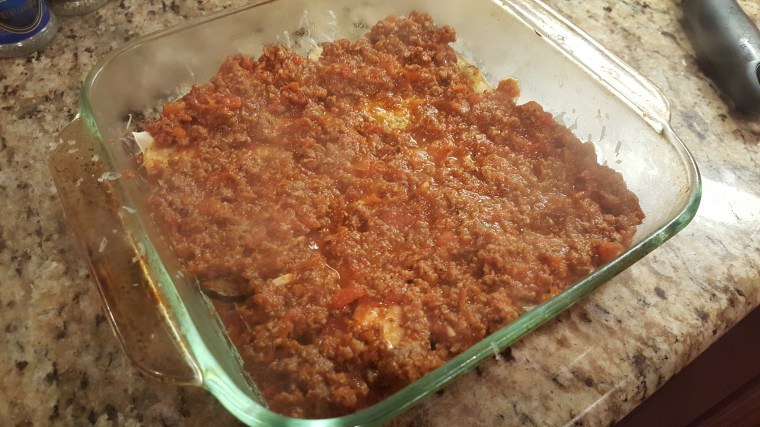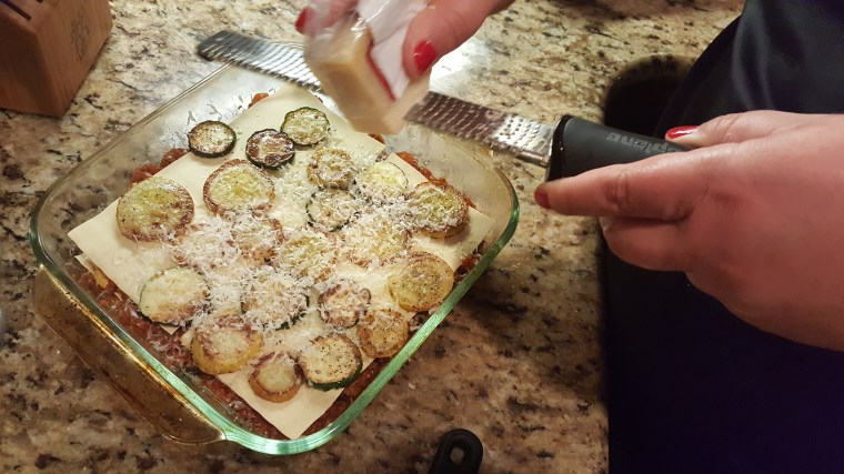 Pre-heat the oven to 375 degrees. In a medium saucepan, using a wooden spoon, cook venison and garlic until browned. Season the meat well with salt and pepper. Because venison is such a lean meat, there is no need to drain the fat as there will be very little. Add jarred tomato sauce and simmer on medium low heat for about five minutes, adding in the dried herbs and crushed red pepper flakes. Taste the sauce and season it again with salt and pepper. Meanwhile, in a separate sauce pan, heat 1 tablespoon of olive oil over medium-high heat. Add squash and zucchini in batches, being careful to place them in a single layer to brown. Do NOT pile the squash and zucchini high or else they will steam and become mushy. Flip the vegetables once during cooking, about 2 minutes on each side. Season with salt and pepper. When the vegetables are finished cooking, begin layering the lasagna. Using an 8 x 8 glass casserole dish, begin with the meat sauce first, followed by a single layer of zucchini and squash, then Parmesan, then two to three sheets of pasta. Repeat the layers until ingredients are all gone, finishing the dish with meat sauce, topped with the remaining Parmesan cheese. Cover the dish with aluminum foil and bake for 25 minutes. Then, remove the foil and finish baking the lasagna for five minutes to brown the cheese. Let stand about 10 minutes before cutting. Slice casserole into six hearty portions. Garnish with fresh parsley.