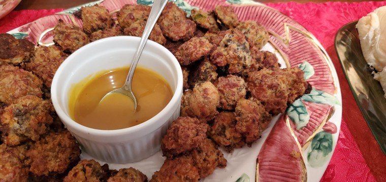 Some Kinda Good Pimento Cheese Sausage Balls with Hot Honey Mustard Sauce