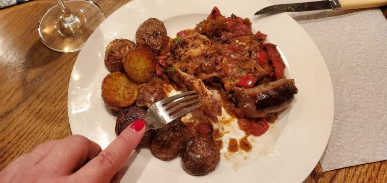 With juicy chicken thighs, sweet Italian sausage, and a vinegary, sweet-sour pan sauce, the dish is full of flavor from the white wine, peppers and garlic. With Valentine’s Day just around the bend and love in the air, what better way to say “I love you,” than with a meal cooked from the heart.