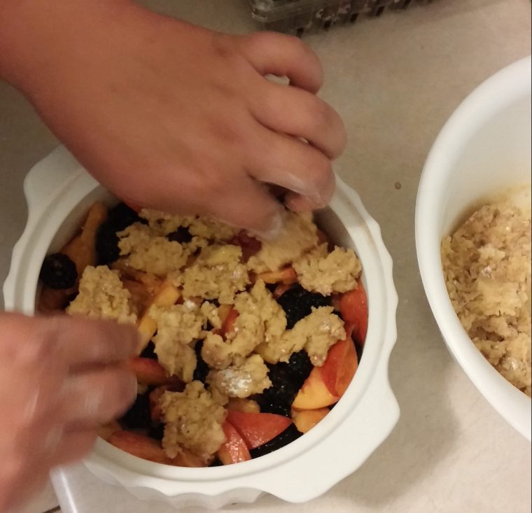 Crumbles make the perfect summer dessert. Simple to throw together, theyβre special enough for entertaining yet quick enough for a post-dinnerΒ weeknight treat. The end result of this Peach-Berry Crumble is a crunchy, buttery topping filled with warm, sweet fruit. Serve with cold vanilla ice cream or sweetened whipped cream. Garnish with fresh mint.Β