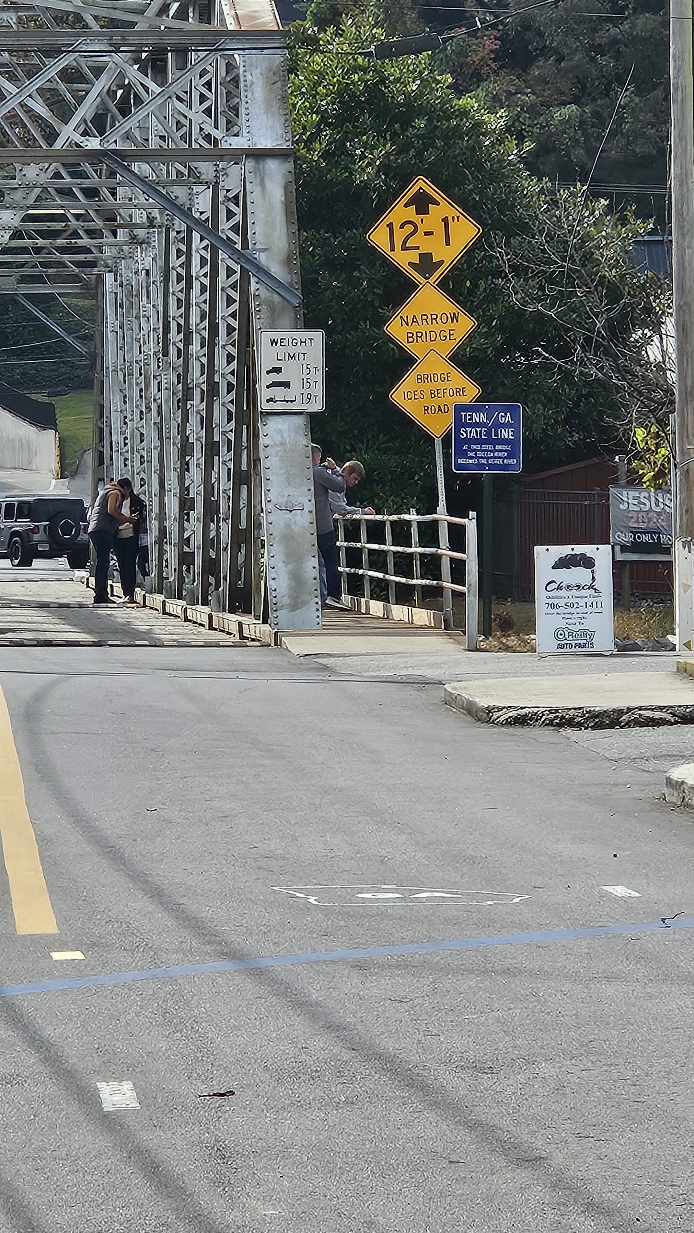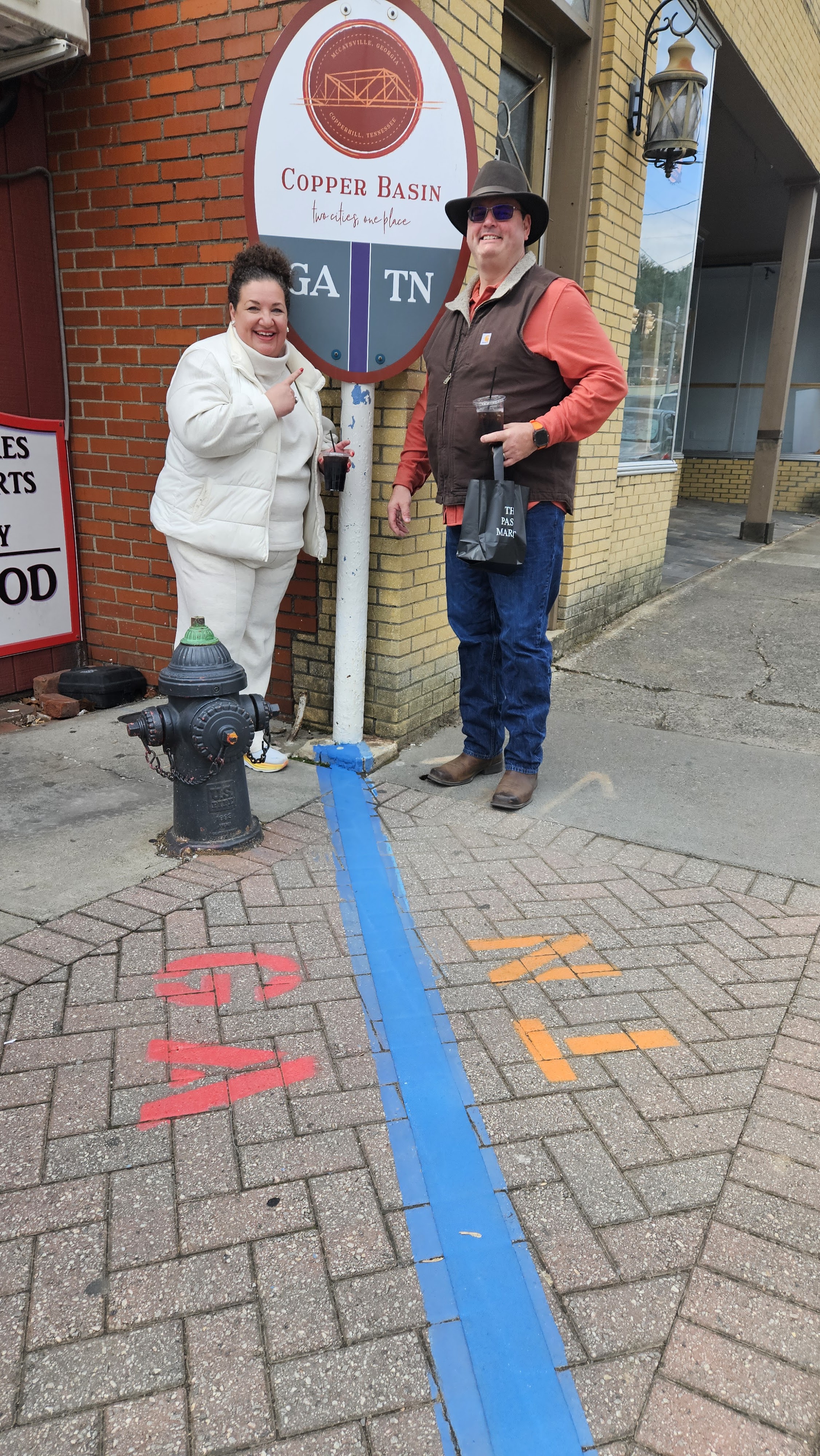 We arrived in McCaysville, Ga. and had a two-hour layover to explore. We popped into the gift shops, shared some nachos and diet cokes on the deck of The Waterfront Restaurant, and took our picture next to the county line sign exclaiming “two cities, one place.” They had an indoor mall that made it easy to walk from shop-to-shop, and we picked up a delicious seasoning blend, some salted caramel chocolates and hazelnut cookies from The Pasta Market. I also loved the General Store with all the beautiful country quilts and vintage clothing.