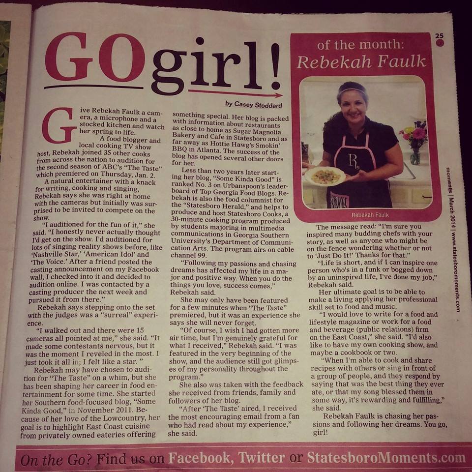3/1/14 Rebekah Faulk Named “Go Girl!” in the March edition of Moments Magazine