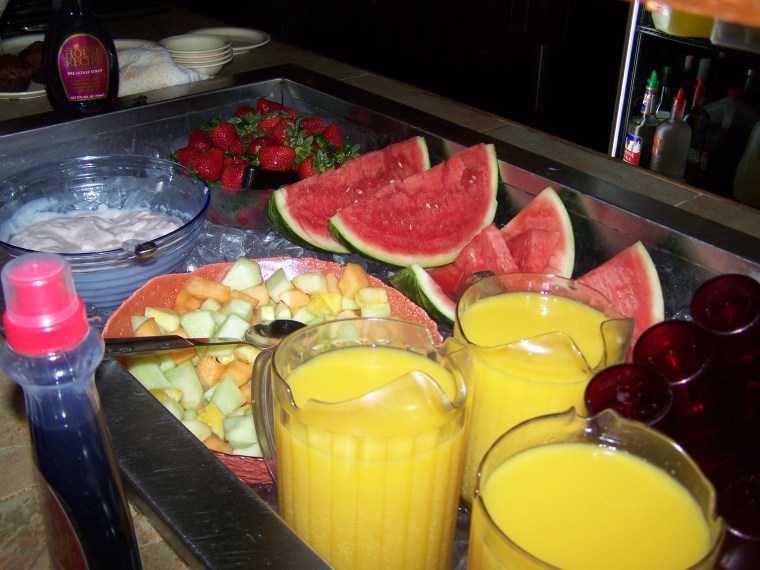 The fresh, cold fruit and orange juice are a welcomed relief from the summer sun.