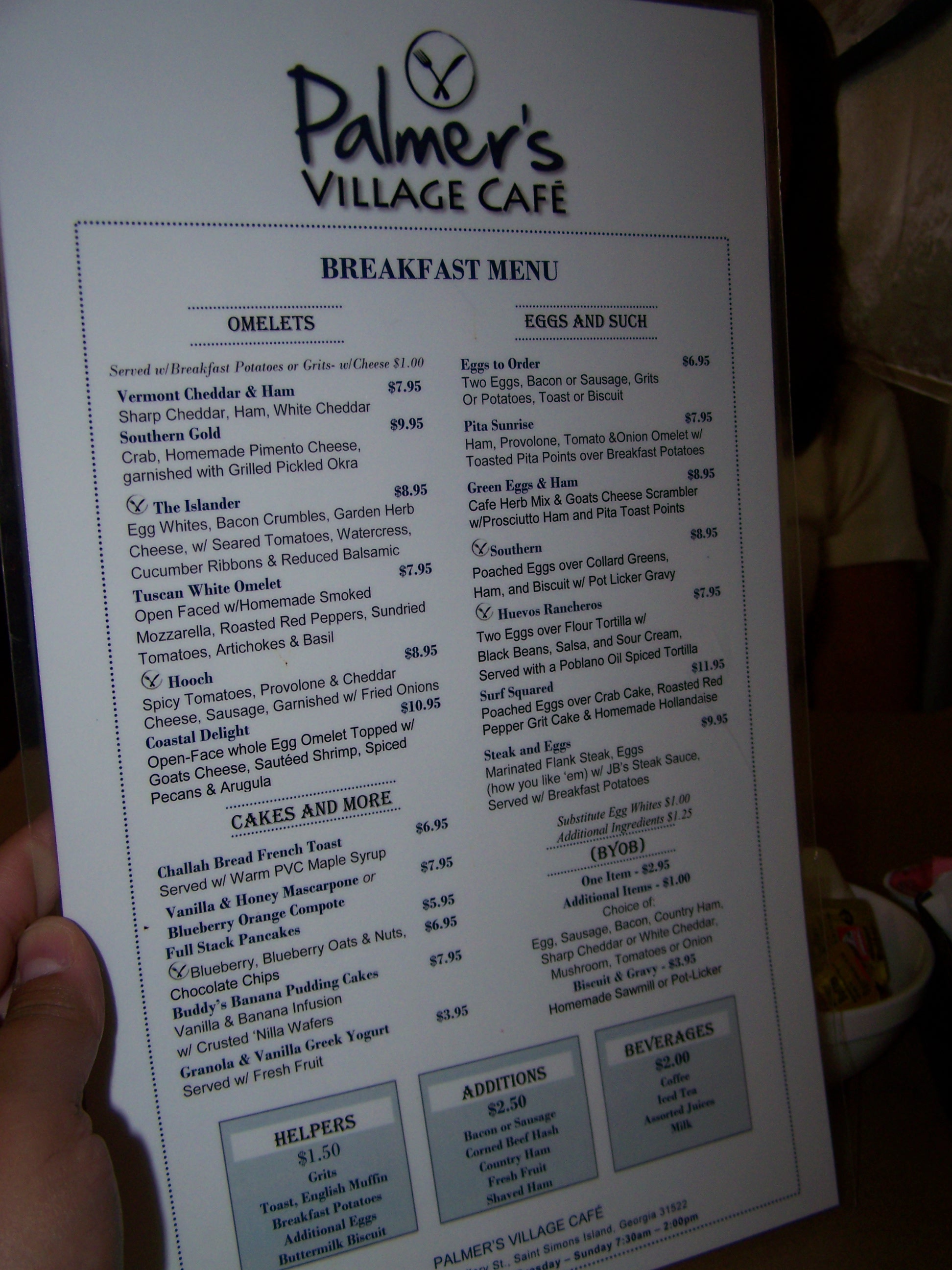 Breakfast on vacation. It’s probably my favorite meal. Whether you rise with the sun or sleep until 10 a.m., the food at Palmer’s Village Cafe on St. Simons Island will motivate you to get up and moving. They take pride in their ingredients and present plates with no detail undone. I’ve never been when there isn’t a crowd and that’s because, where there’s good food, you’ll find people.