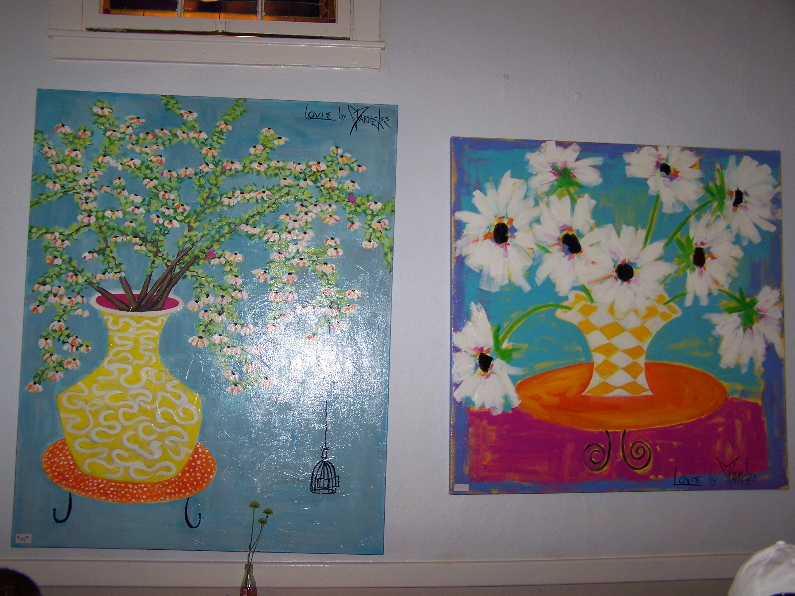 Artwork by local artist Cathie Parmelee decorates the walls and is available for purchase.