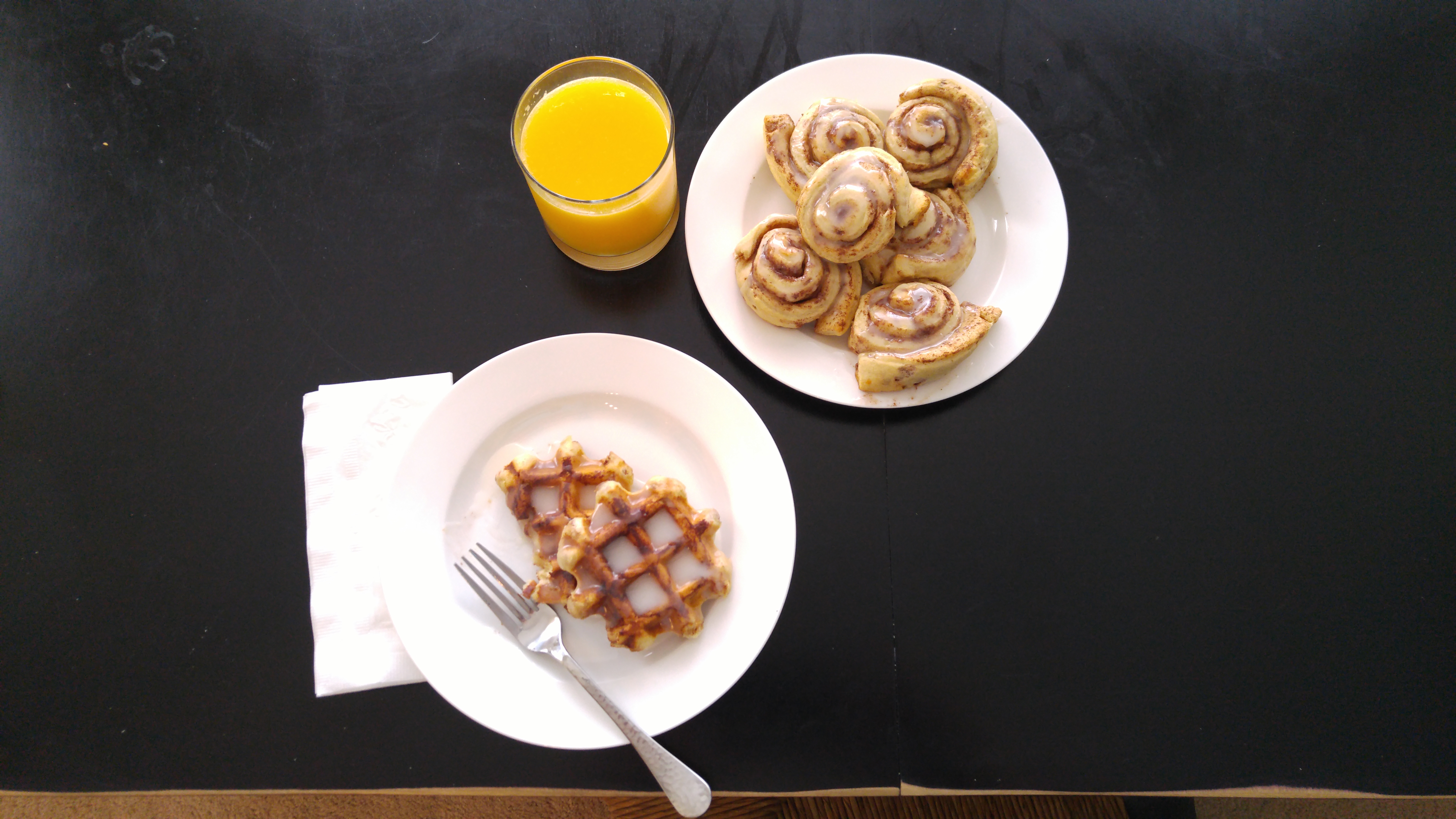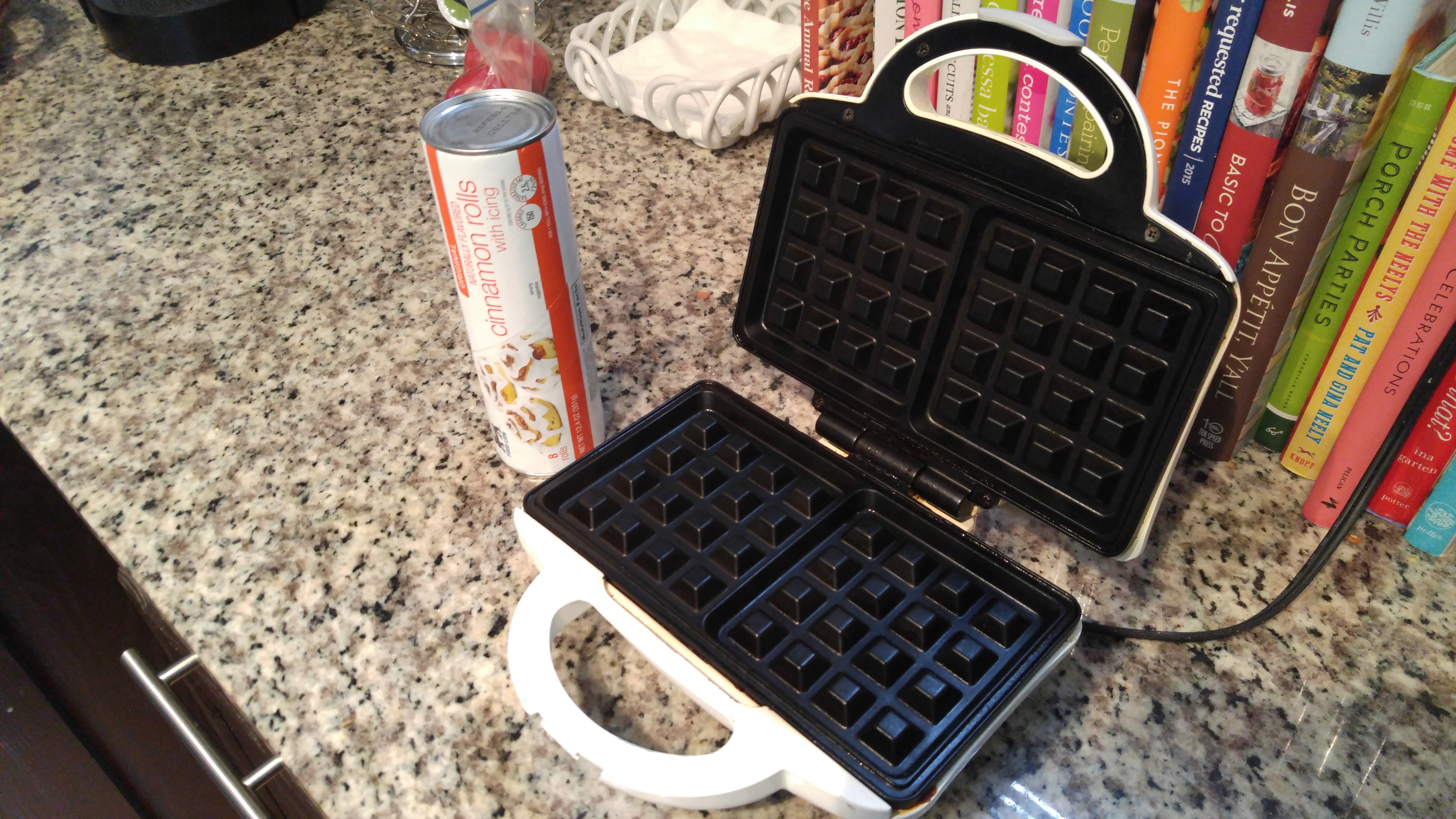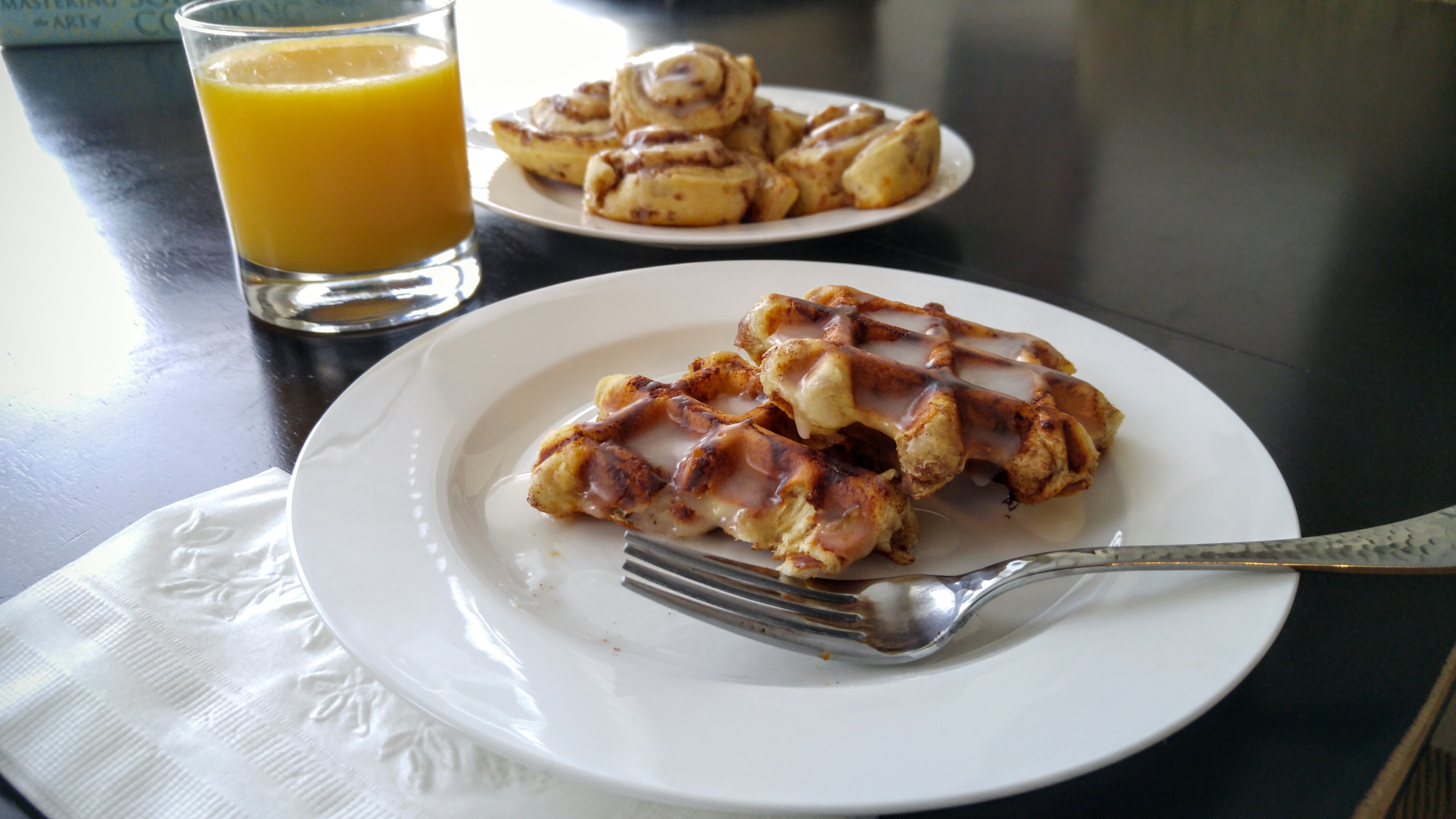 The Food Network’s Sunny Anderson taught me this trick while I was watching The Kitchen earlier this week. As they say on the show, “I tried it, and I liked it!” Essentially, the waffle iron can cook cinnamon rolls in less than half the time it takes to cook them in the oven. And yes, the waffle iron cooks them all the way through.