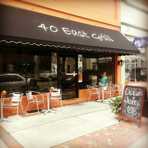 40 East Grill has a quaint, urban feel that’s trendy and warm with exposed brick throughout, a welcoming chalk board at the entrance that lists daily specials, original hardwood floors, earthy paint colors and modern lamp lighting. Outdoor seating is available with a great view of downtown Statesboro, onlooking the Emma Kelly Theater and Averitt Center for the Arts. Live music happens often too, varying from country, rock and bluegrass. Even the talent is local! Additionally, the ladies restroom is among the cutest I’ve seen complete with a luxurious crystal chandelier and vessel sink.