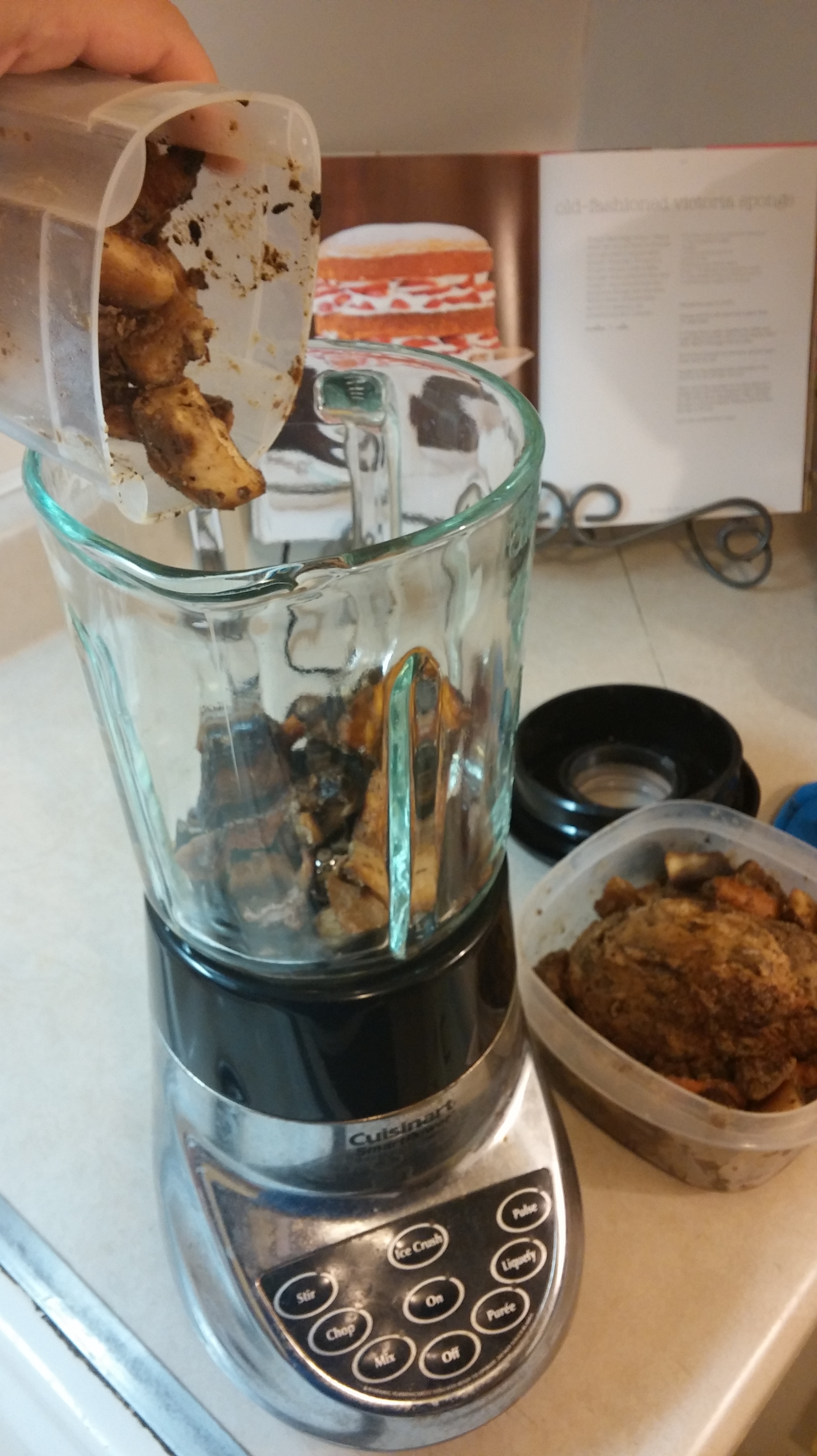 In a food processor or a blender, puree the vegetables until fluid, adding a little chicken broth or water to help the vegetables liquefy. You can also use an immersion blender, but that’s a fancy tool I’ve yet to acquire. If you’d like your soup to have a little texture, don’t puree them totally. Just pulse your blender a few times, leaving some of the vegetables chunky. I enjoy bites of carrot here and there, rather than pure creaminess, but it’s personal preference.