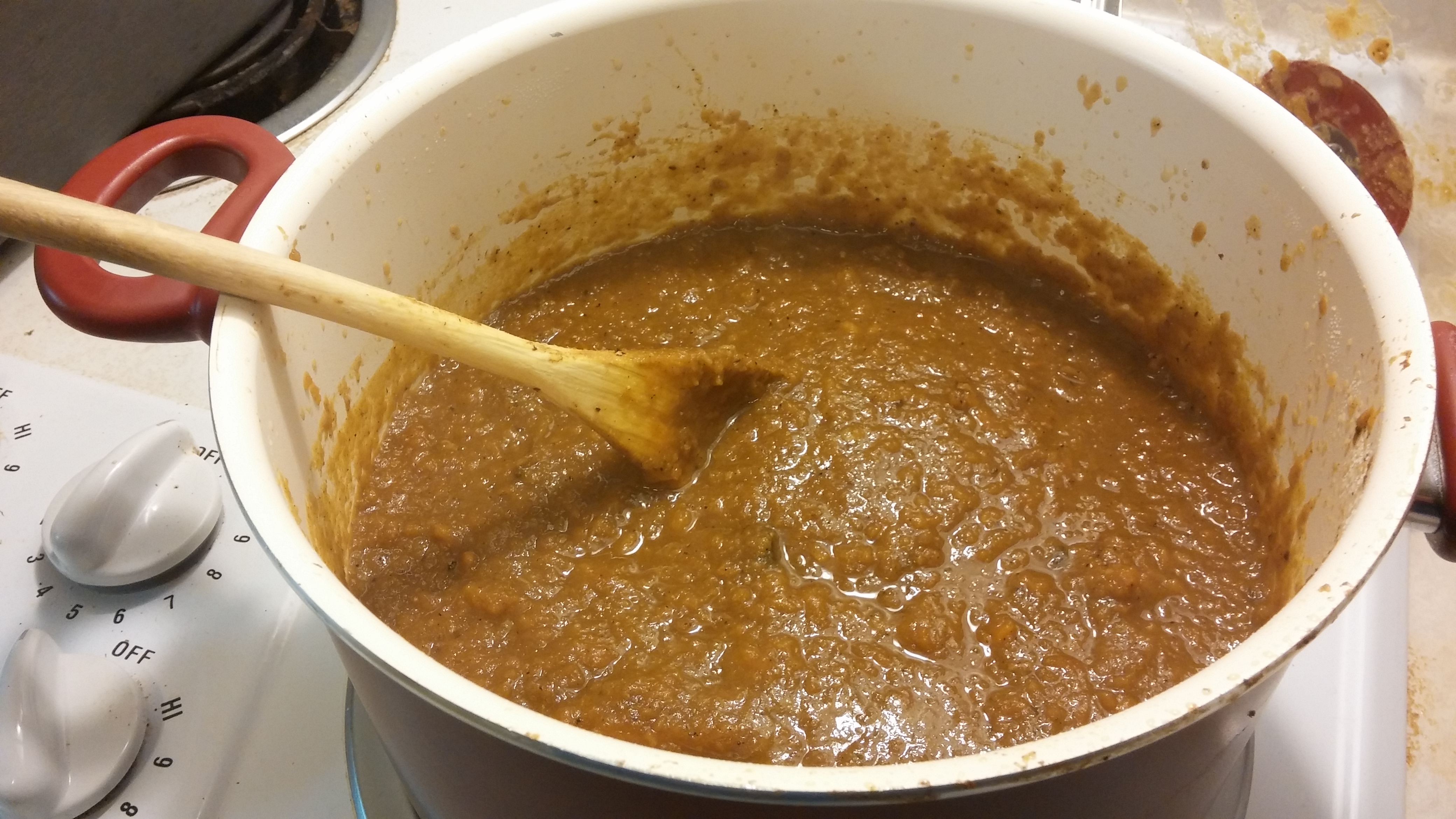 Transfer the pureed vegetables to a stock pot. Then add 3 – 4 cups of chicken broth. Season to taste with salt, pepper and dried oregano. Let simmer over medium-low heat for at least 30 minutes.