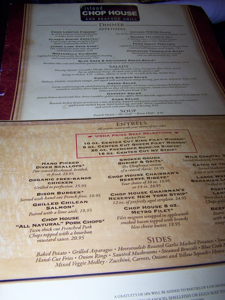 UPDATE 3/27/13 – Island Chop House and Seafood Grill Has Closed