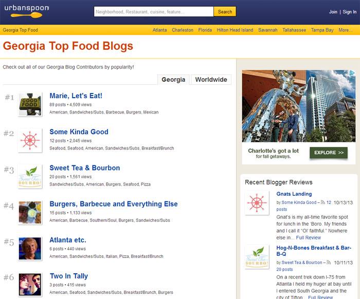 Some Kinda Goodย has held the #2 ranked spot on Urbanspoon’s Leaderboard of Top Georgia Food Blogs since April 2013.
